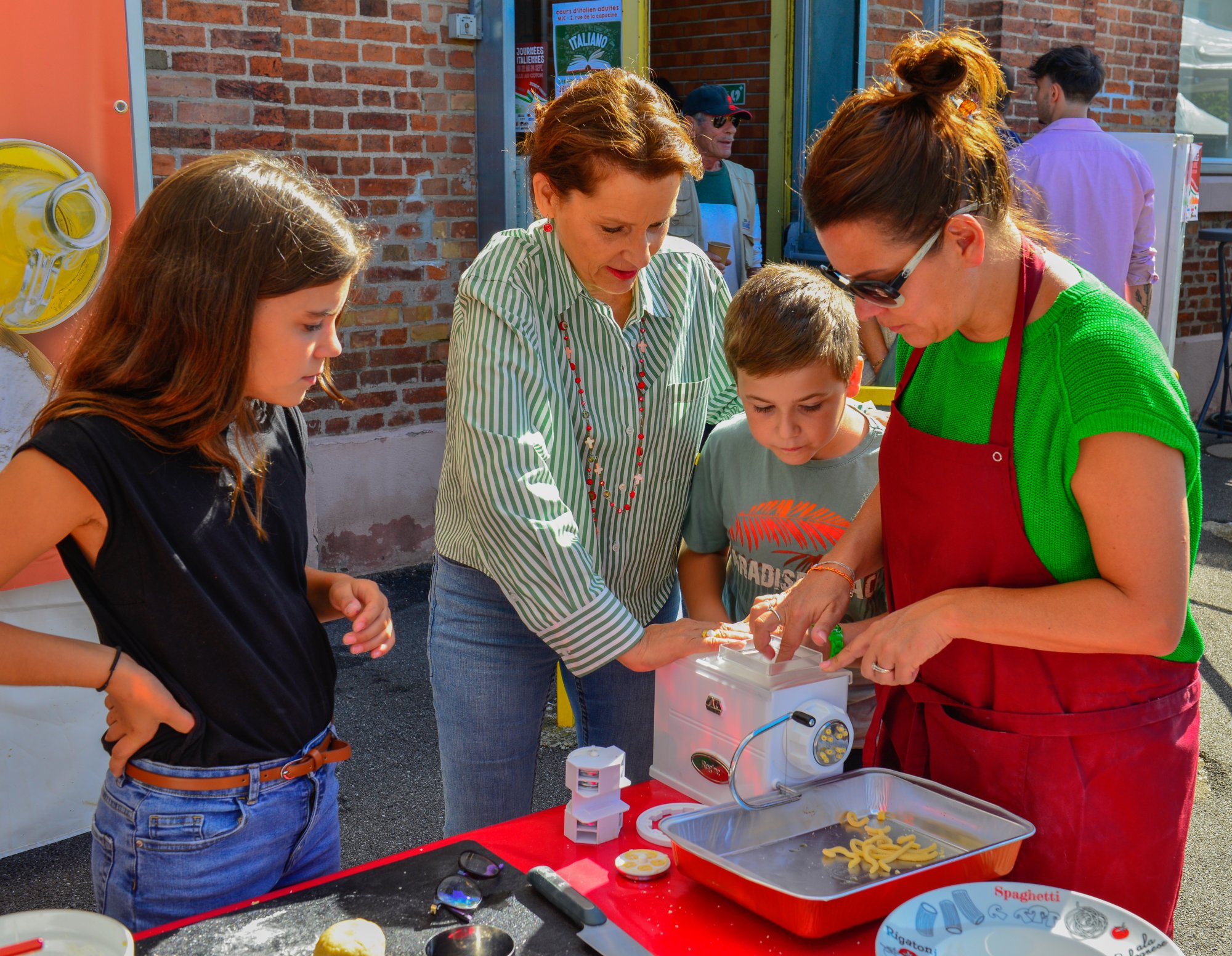 Les journées Italiennes: retour en image de l'atelier PASTA PARTYLire cette vidéo sur YouTube Cette année, nous étions partenaire des journées italiennes à Wittenheim pour la 2 eme année. Dimanche 24 septembre, les participants ont passé d’agréables moments autour des ateliers de cuisine italienne. Si vous aimez la culture italienne, notamment sa cuisine, cet atelier Pasta Party résumé en PHOTOS vous fera voyager à coup sûr. Du soleil, de la bonne humeur, du partage et beaucoup de plaisir. Explications. Focus en réels sur l'ATELIER PASTA PARTYLire cette vidéo sur YouTube Une journée italienne riche en partage Lors des journées italiennes à Wittenheim, nous avons organisé l’atelier Pasta Party qui s’est déroulé à l’extérieur de la Halle au Coton à Wittenheim. La renommée de la cuisine italienne n’est plus à démontrer. Bercée par la musique italienne, nous avons passé un moment joyeux avec les participants et les visiteurs. Au programme, démonstration de confection de pâtes italiennes, cours de cuisine en groupe ( 8 personnes) avec le chef et beaucoup de bonne humeur. Bonheur, joie et plaisir du partage étaient au rendez-vous lors de cet atelier participatif qui annonçait une superbe journée ! Un moment de découverte de la gastronomie italienne à Wittenheim Les journées italiennes à Wittenheim sont caractérisées par des spectacles et des concours. Vous avez même pu assister à des concerts pour découvrir la musique italienne. Dans le cadre de notre atelier de cuisine Pasta Party, les participants ont offert un spectacle culinaire mémorable pour les passionnés de la gastronomie italienne et du fait-maison. Vous étiez nombreux, en famille, entre amis en couple ou entre copines à nous rejoindre. Focus sur les Journées Italiennes à WittenheimLire cette vidéo sur YouTube Sourire, plaisir de la cuisine fait maison et apprentissage avec les machines. Des instants précieux, qui font du bien ! Des heures passées entre nous à se connaitre, à s’entraider et aussi à goûter les réalisations. Des enfants heureux, un vrai plaisir d’ apprendre et de retrouver le plaisir des rencontres. La préparation de pâtes maison, de tagliatelles et d’autres pâtes avec des machines à la main et automatiques ont rencontré un succès fou ! Faire la pâte à la main, pour créer une recette. Un retour aux valeurs traditionnelles ! Le fait maison, un désir d’apprendre et de se former à des techniques simples. Ce fut un beau moment partagé pour apprécier les plaisirs de la cuisine italienne et surtout le reflexe de faire du fait maison en toute simplicité ! Bravo à tous les participants, aux recettes de Simone Zanoni, chef et Youtubeur ainsi qu’à notre chef local. Facebook Twitter