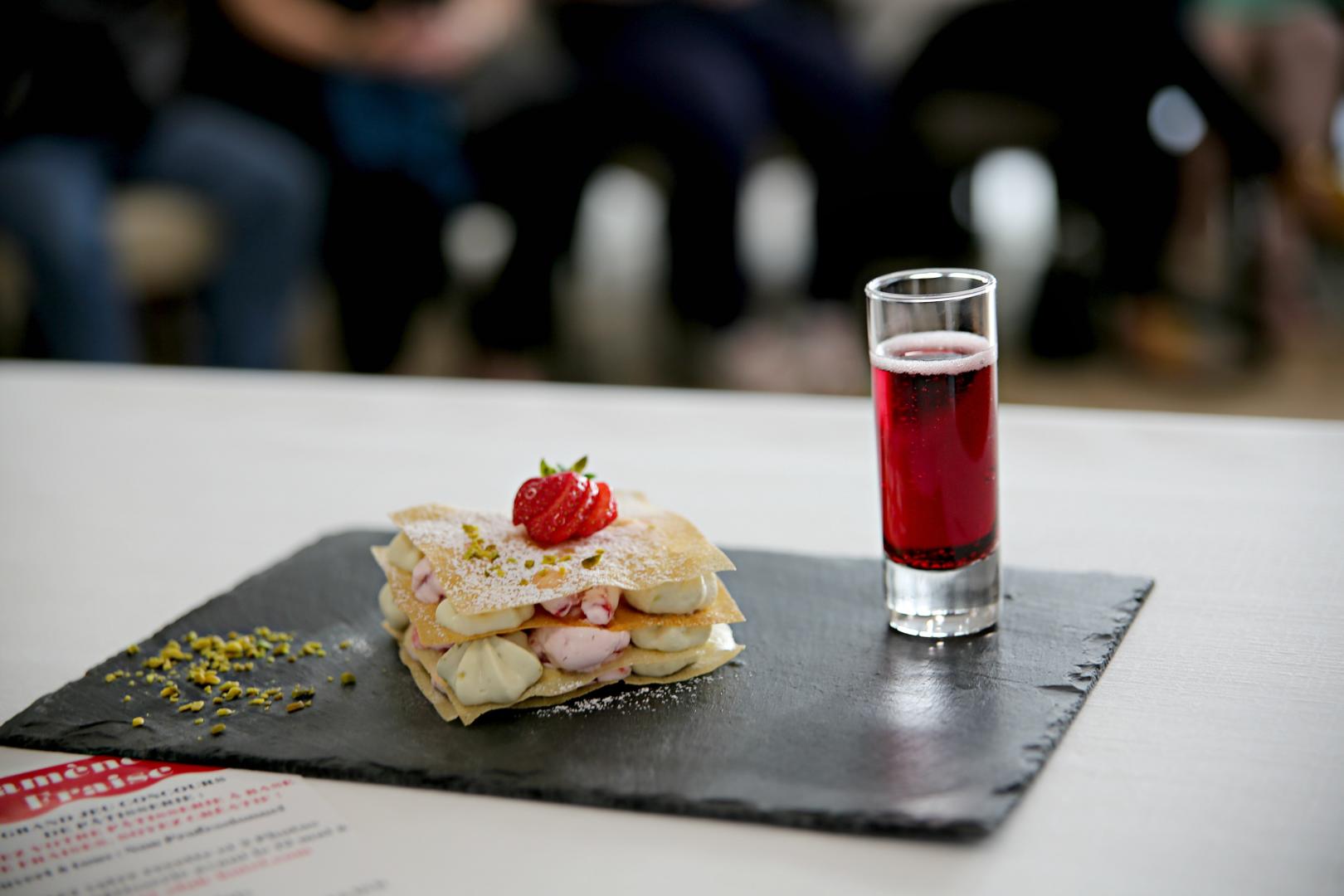 La grande finale de pâtisserie du côté de Blotzheim à été un grand succès. Un grand nombre de candidats sont arrivés samedi 25 mai à 14 heures des 4 coins du haut-Rhin avec ce fameux dessert à la fraise sélectionné. Des sourires, du plaisir pour un après- midi de partage ! Souvenez – vous, il y a deux mois un grand jeu concours autour de la fraise était proposé pour créer un dessert à la fraise. L’objectif était de s’amuser, de créer un dessert à la fraise d’Alsace , de se faire plaisir tout en ciblant les passionnés de la pâtisserie. La réalisation de Fatima, grande gagnante du concours de pâtisserie Le jury à table du côté de l ‘Envol L’Envol a souhaité un jury de professionnel autour des métiers de la bouche composé de monsieur Harmuth, dirigeant du concept hôtelier Brit Airport Club Hôtel à Blotzheim, Monsieur Leyes, boulanger pâtissier à Saint-Louis, une très belle référence dans la région, Elise Haegelin des caves Materne Haegelin à Orschwihr, le chef cuisinier de l ‘Envol et Ma Maison et Nous, nouveau Blogzine d’inspirations et Tendances de la maison.[ Le jury attentif et concentré Une organisation au top à l ‘Envol grâce au directeur Claude Placet et toute son équipe Le directeur de l ‘Envol, Claude Placet a souhaité sélectionné 13 personnes sur un grand nombre de candidats. Quelle surprise de voir des jeunes de 15 ans, trouver du plaisir à la confection de la pâtisserie, ainsi que des mamans et des hommes passionnés. Une envie des candidats de faire partager cette passion de la cuisine, cette générosité de la gourmandise.? L’ENVOL cherche la pépite gourmande Les candidats sont venus accompagnés par des fans, une salle pleine à craquer autour de la fraise d’Alsace au restaurant L’Envol. Claude Placet, directeur de l’Envol La sélection a été réalisé autour de la fraise, du goût et de l’aspect visuel ainsi que de la technique. Nous avons trouvé beaucoup de plaisir de partager cet après-midi avec toute cette équipe. Du côté cuisine, nous n’avons pas été déçu du goût. De la fantaisie, des saveurs d’ailleurs comme la coriandre, la vanille de Madagascar, le poivre noir.. Une créativité surprenante de tous les candidats. Il à été difficile de faire un choix toutefois Fatima à été la grande gagnante d’un dessert d’exception. L’aspect visuel, une très belle technique, le respect de l’utilisation de la fraise ainsi que des saveurs extraordinaires. Fatima, grande gagnante du jeu concours. Elle remporte un Week-end au Brit Airport Club Hôtel. ( nuitée, repas gastronomique, Spa,détente durant tout un week-end.) Nous avons adoré ce dessert que vous retrouverez à la carte du restaurant l’Envol durant cette saison. Patrick Harmuth, fondateur du concept hôtelier Cet été un détour du côté de l ‘Envol dans le complexe hôtelier soigné du Brit Airport Club Hôtel à Blotzheim. La gourmandise sera au rendez-vous pour un moment agréable sous le soleil d’Alsace. Brit Airport Club Hotel, Restaurant l’envol https://airport-club-hotel.fr/ Facebook Twitter