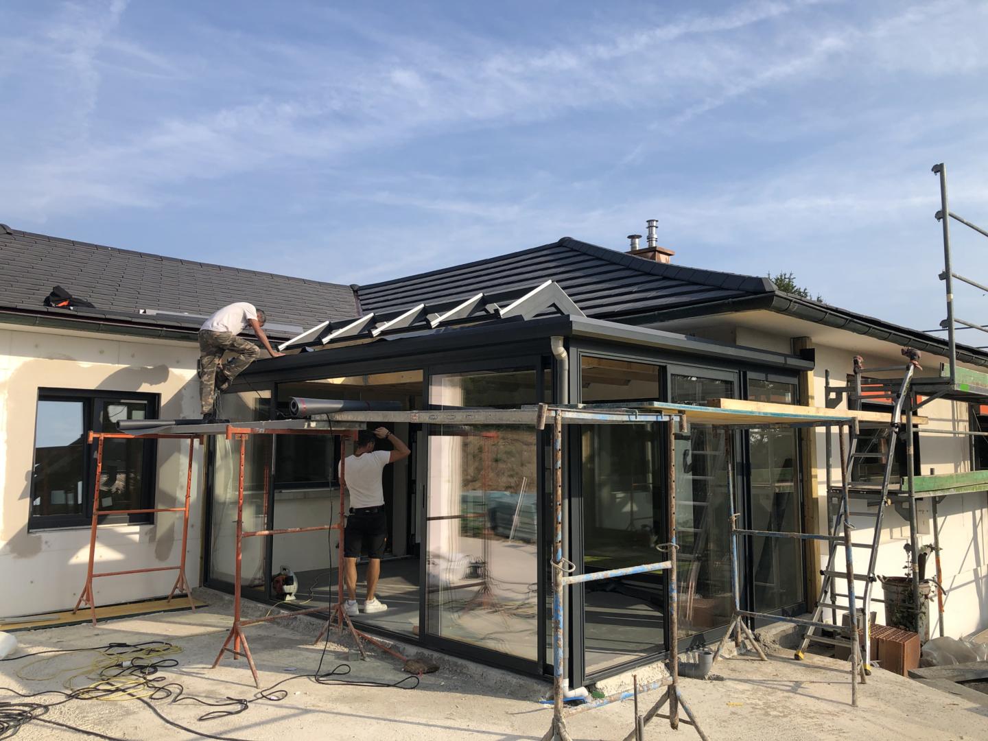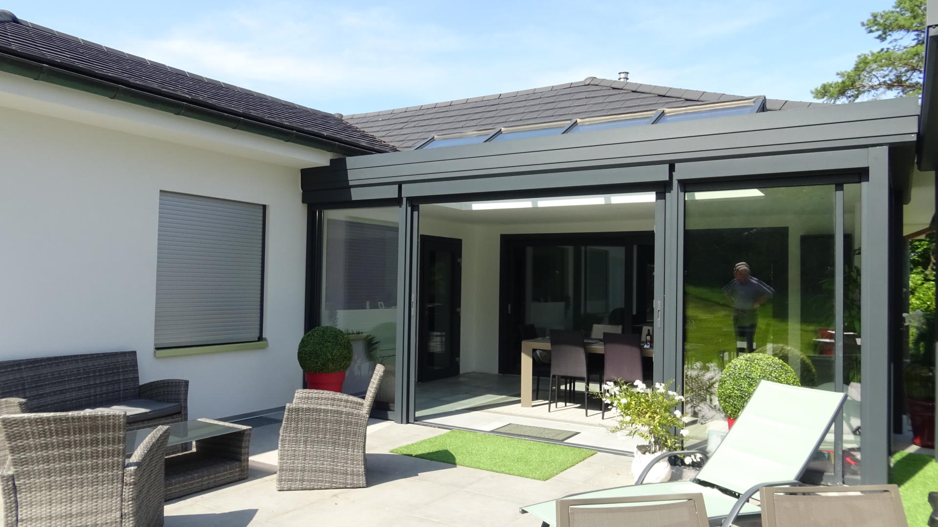 Centre Véranda Rixheim: Pose d'une véranda et d'une pergolaLire cette vidéo sur YouTube Dans le bassin mulhousien et dans tout le Haut-Rhin, Centre Véranda conçoit, fabrique et pose des vérandas sur-mesure. Plus de lumière, plus de place, véritable extension de la maison, la véranda est la solution idéale pour agrandir sa maison et se créer une pièce de vie supplémentaire. De style contemporain, classique, victorien ou traditionnel, pour une cuisine ouverte, une salle à manger, un salon ou une bibliothèque, l’artisan alsacien répond à toutes les demandes pour vous réaliser une construction confortable toute l’année. Avant projet Une véranda à toit plat, nouvelle génération et économique Spécialisée dans la fabrication et l’installation de vérandas et de pergolas sur-mesure, Centre Véranda a notamment développé une véranda nouvelle génération à toiture plate, avec un système autoportant breveté permettant un montage ne nécessitant aucun permis de construire. Une innovation parfaite pour agrandir son espace rapidement avec une luminosité exceptionnelle et une vision panoramique de votre jardin. Centre Véranda 68 Près de Mulhouse, Centre Véranda a réalisé et installé une véranda à toit plat de 18 m2 dans le cadre d’un projet de rénovation. Dans cette maison, l’objectif était d’agrandir l’espace avec une pièce en plus, mais aussi et surtout de gagner en luminosité. Assise sur 2 pans de murs, conçue avec de grandes baies vitrées de chaque côté, une toiture plate à ossature bois surmontée d’un dôme de toiture vitré, et équipée de spots lumineux dans le faux plafond, l’avant / après est saisissant. A proximité, une pergola a été installée pour y placer le SPA sur une très jolie vue sur la plaine. Avant-après travaux, focus en photos du chantier de CENTRE VERANDA dans le Haut-Rhin Un design épuré, un réel confort thermique et phonique, cette extension d’habitation est conçue contre l’effet de serre en été, et contre les parois froides en hiver. Le vitrage est réalisé de manière à atténuer sensiblement la lumière présente à l’intérieure tout en conservant une luminosité satisfaisante dans les pièces attenantes. En ce qui concerne la forme, les matériaux, les couleurs ou encore l’aspect des finitions, le choix est total en fonction de vos besoins et l’équipe est présente à chaque étape de votre projet d’agrandissement pour une réalisation entièrement sur-mesure et personnalisée pour une parfaite harmonie avec votre habitation. Centre Véranda Haut-Rhin Plus d’espace, plus de lumière dans votre intérieur avec Centre Véranda à Rixheim Une entreprise alsacienne de référence pour la qualité de ses réalisations, des produits 100% sur-mesure, depuis près de 40 ans, Centre Véranda nous fait profiter de son expérience et de son savoir-faire pour l’installation de vérandas et de pergolas dans le Haut-Rhin, de Guebwiller à Saint-Louis, en passant par Cernay ou encore Altkirch. Grâce à une équipe de professionnels confirmés et à l’étude de votre projet dans leurs propres ateliers à Rixheim, Centre Véranda vous propose des projets uniques entièrement adaptés à vos envies et personnalisés selon vos demandes. En interne, grâce au technicien de bureau d’étude, le spécialiste de la véranda réalise des plans 3D incorporés aux photos de votre maison pour vous aider à mieux vous projeter dans votre futur cocon. Agrandissement de votre espace de vie ! Bonne isolation, vitrage adapté, votre véranda jouera aussi le rôle de régulateur thermique pour vous permettre de réaliser de belles économies d’énergie. La véranda à toit plat, de haute performance, devient un cocon au design moderne pour faire entrer le soleil dans la maison et ainsi profiter de ce nouvel espace été comme hiver. Vérandas, pergolas, accessoires, solutions de stores de protection solaire ou pour optimiser l’éclairage, vous découvrirez de nombreuses possibilités pour agrandir confortablement votre maison en toute simplicité dans le showroom de 300 m2 de Centre Véranda à Rixheim. Notre avis +++: un client très satisfait de cette réalisation dans le cadre d’une rénovation complète de cette habitation ! Facebook Twitter